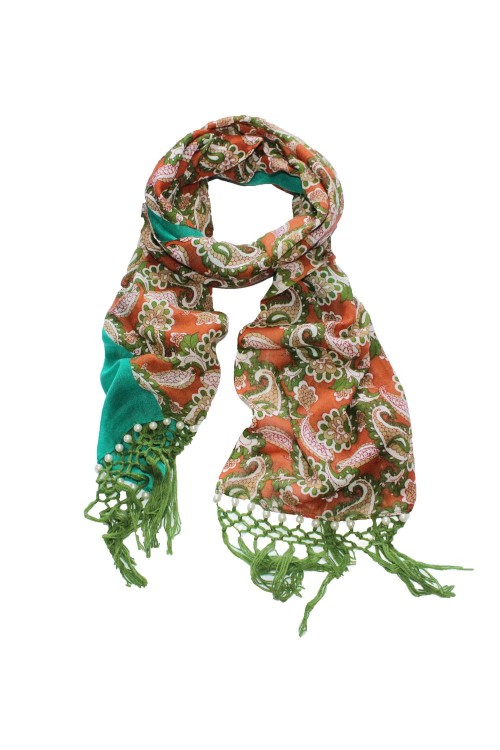 COMPOSITION – 100% Woolen Printed Scarf With Bead & Fringes