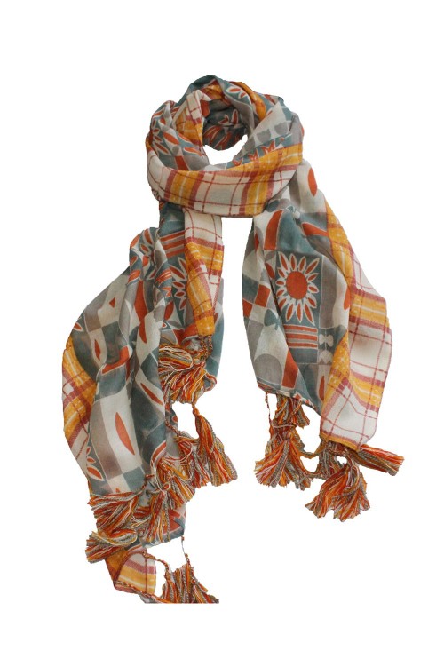 100% Woolen Printed Scarf With Tassel