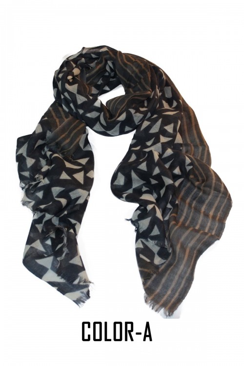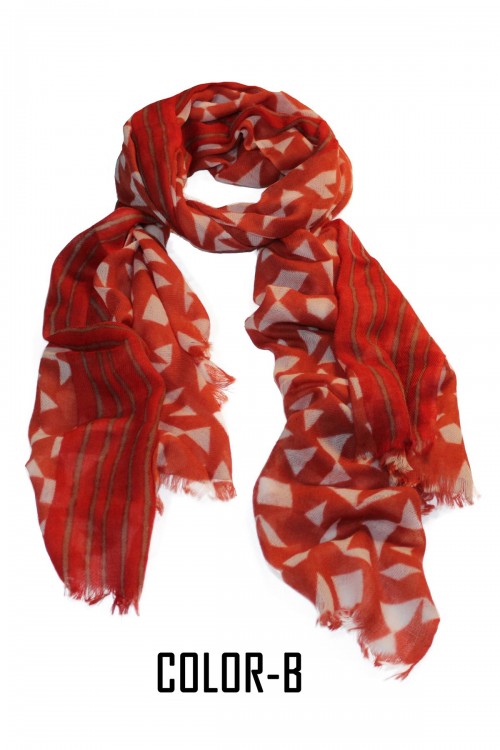 COMPOSITION – 100% Woolen Screen Printed Scarf With Self Fringes.