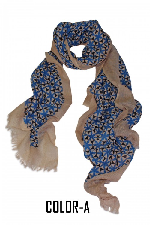 100% Woolen Screen Printed Scarf With Self Fringes.