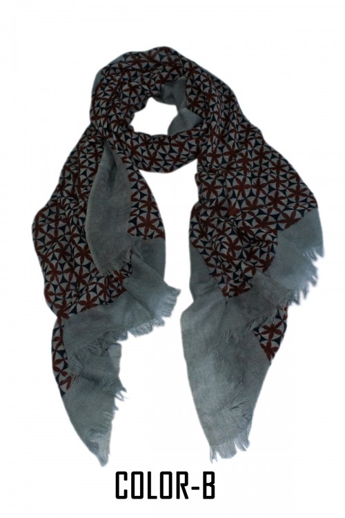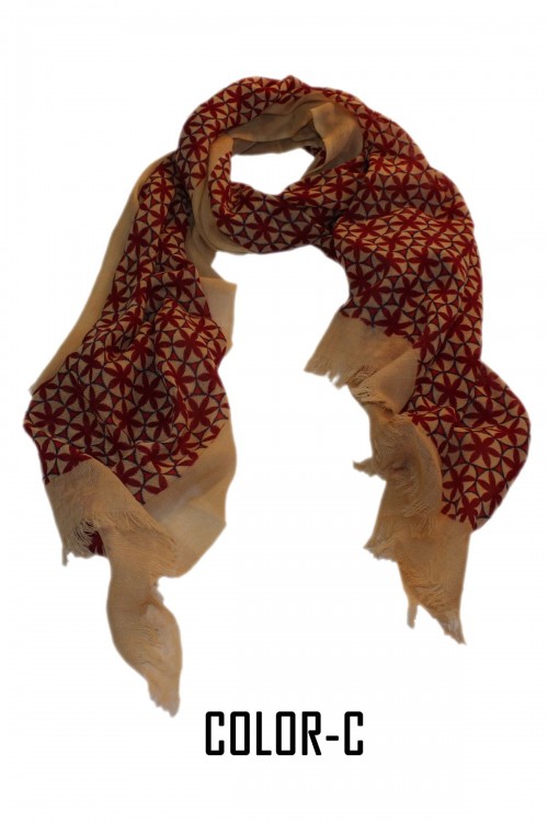 COMPOSITION – 100% Woolen Screen Printed Scarf With Self Fringes.