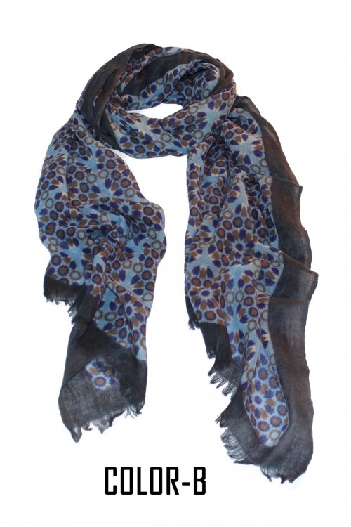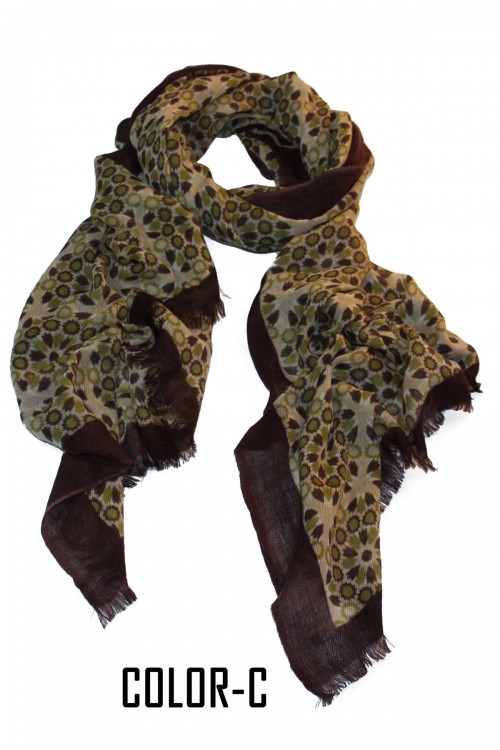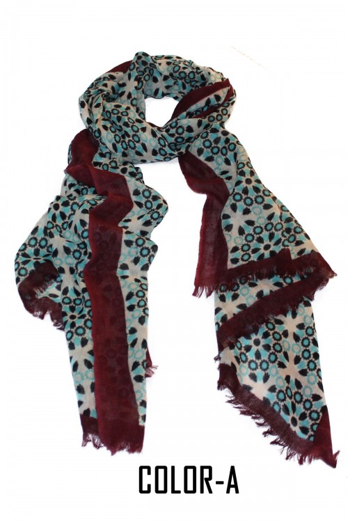COMPOSITION – 100% Woolen Screen Printed Scarf With Self Fringes.