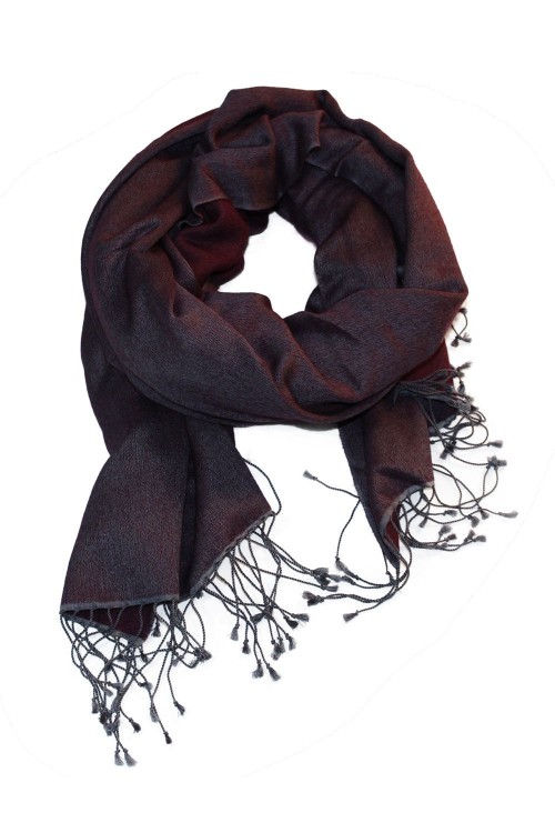 70% Pashmina 30% Silk Reversible Woven Scarf With Twisted Fringes.