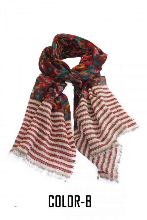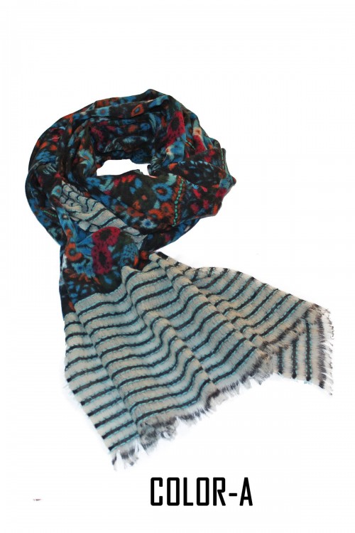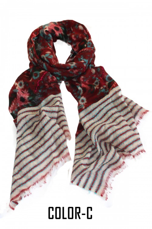 COMPOSITION – 100% Woolen Printed Embroidery Highlighted Scarf With Self Fringes.