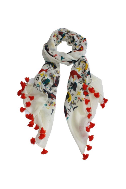 100% Woolen Printed Scarf With Pompom